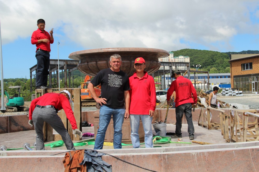 Recently, our company has produced a large fountain for a customer from Russia and arranged staff to install it locally.
